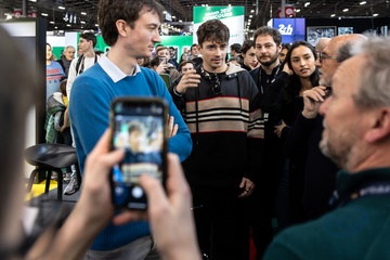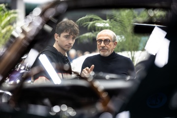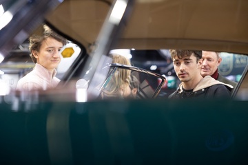 Charles Leclerc i jego partnerka Alexandra Saint Mleux odwiedzają pokaz Rétromobile 2024 w Paryżu