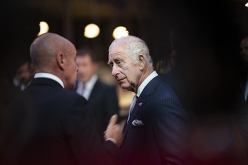 Le président Emmanuel Macron et le roi Charles III d'Angleterre, lors de leur visite au Musée d'Histoire naturelle pour rencontrer des chefs d'entreprise et parler de biodiversité à Paris