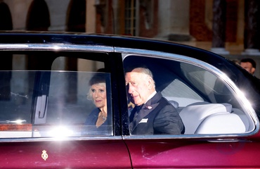 Le président de la République Emmanuel Macron et sa femme Brigitte Macron reçoivent le roi Charles III d'Angleterre et Camilla Parker Bowles, reine consort d'Angleterre, au palais de L'Elysée à Paris