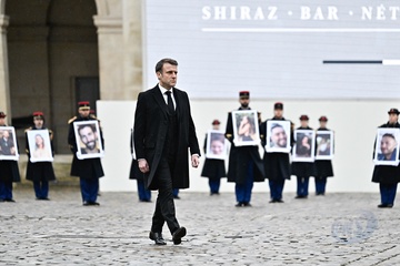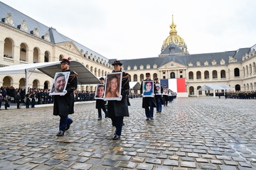 Narodowa ceremonia oddania hołdu francuskim ofiarom ataków terrorystycznych z 7 października w Izraelu na głównym dziedzińcu Hôtel National des Invalides” 14