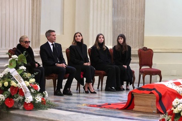 Książę Emmanuel-Philibert Sabaudii uczestniczy w stypie pogrzebowej swojego ojca, księcia Victora-Emmanuela Sabaudzkiego, w kościele Sant'Uberto w Turynie. 6