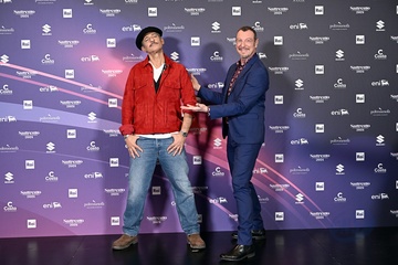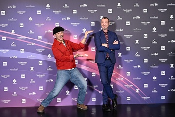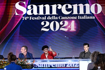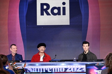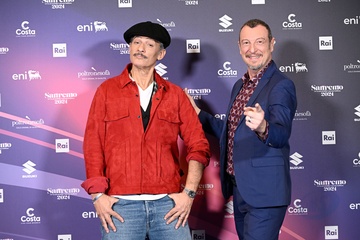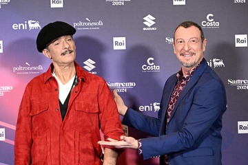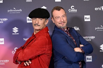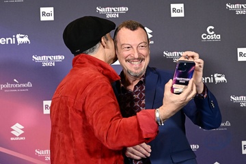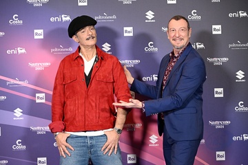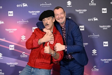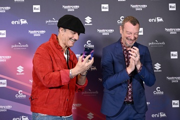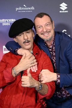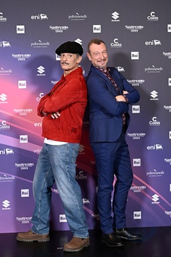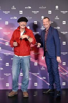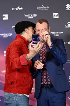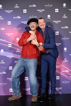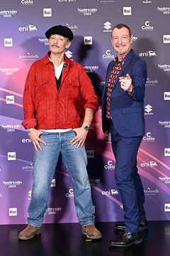 Amadeus and Rosario Fiorello during a photocall on the occasion of the 74th Sanremo Italian Song Festival, in Sanremo, Italy, 10 February 2024.