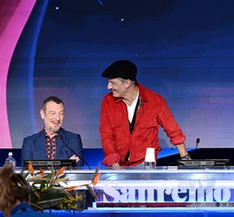 Amadeus I Rosario Fiorello podczas 74th Sanremo festiwalu