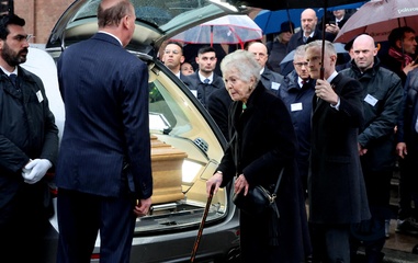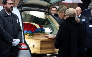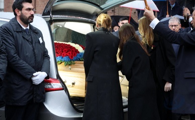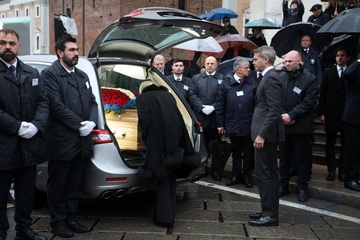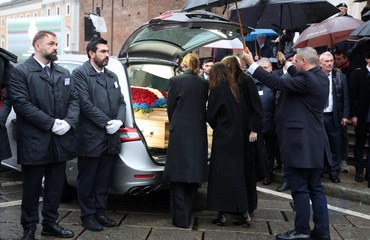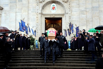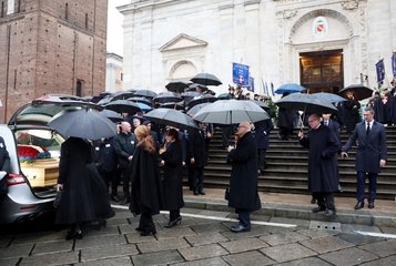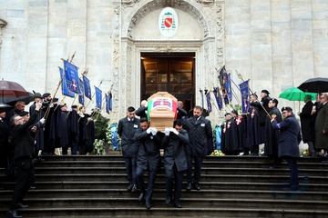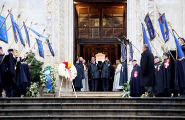 Wyjście z pogrzebu księcia Wiktora Emanuela Sabaudzkiego w bazylice Superga niedaleko Turynu
