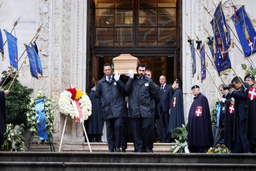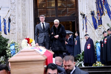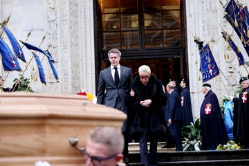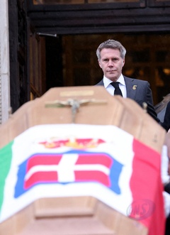 Wyjście z pogrzebu księcia Wiktora Emanuela Sabaudzkiego w bazylice Superga niedaleko Turynu