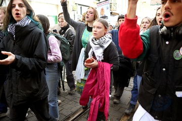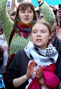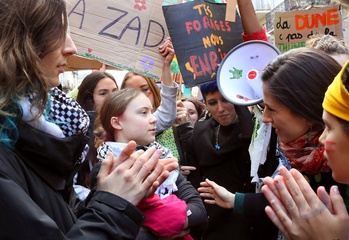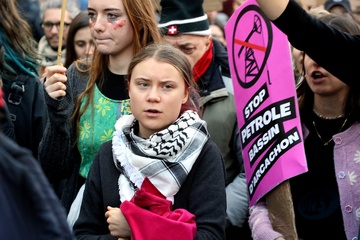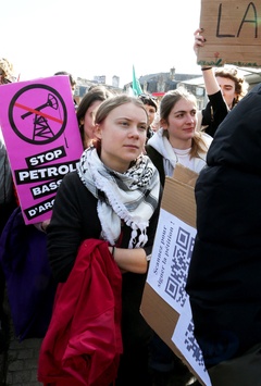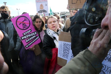 Greta Thunberg bierze udział w demonstracji przeciwko projektowi wiercenia ośmiu szybów naftowych w lesie La Teste w dorzeczu Arcachon