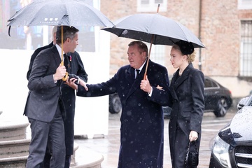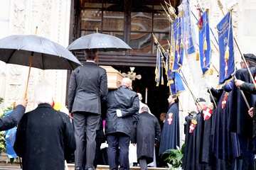 Les arrivées aux funérailles du prince Victor Emmanuel de Savoie en la cathédrale Saint-Jean-Baptiste de Turin