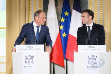 konferencja prasowa Emmanuel Macron i premiera Donald Tusk w palacu prezydenckim w Paryzu 28