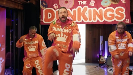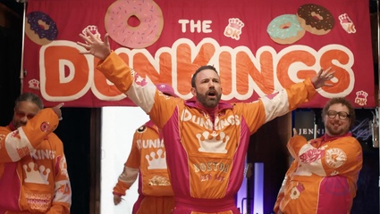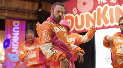 Jennifer Lopez, Ben Affleck, Matt Damon i Tom Brady w reklamie Dunkin' Super Bowl