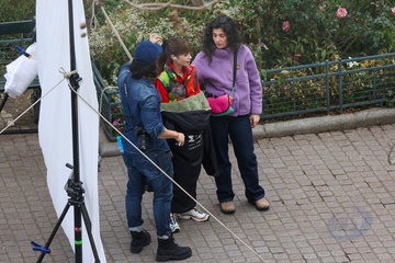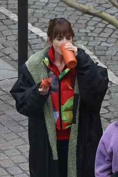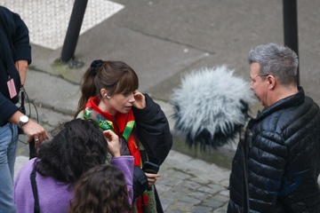 Semi-exclusif - Lily Collins et Camille Razat sur le tournage de la saison 4 de "Emily in Paris" sur Netflix à Paris