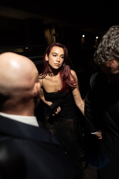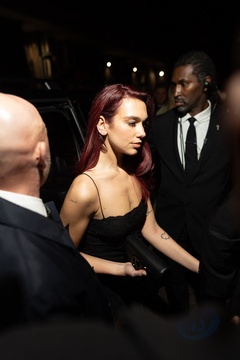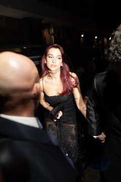 Dua Lipa et son compagnon Callum Turner arrivent au Chiltern Firehouse de Londres