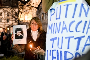 wiec ku pamięci przywódcy rosyjskiej opozycji Aleksieja Nawalnego w Mediolanie, Włochy – 19 lutego 2024 r.