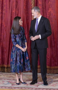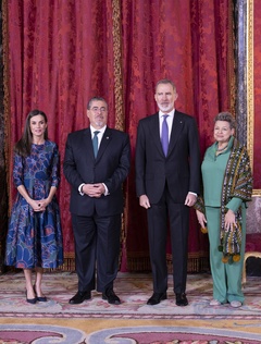 Król Hiszpanii Filip VI i królowa Letycja wydają uroczysty obiad z okazji wizyty prezydenta Gwatemali Bernardo Arevalo w pałacu królewskim w Madrycie 35