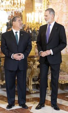 Le roi Felipe VI et la reine Letizia d’Espagne, organisent un déjeuner d'Etat à l'occasion de la visite de Bernardo Arevalo, président du Guatemala, au palais royal à Madrid