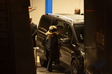 Kanye West i jego córka North opuszczają Accor Arena Paris po koncercie Vultures Volume 1