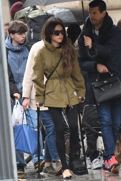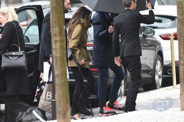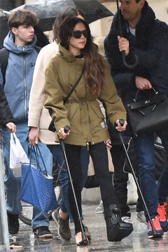 Semi-exclusif - Victoria Beckham arrive sous une pluie battante à Gare du Nord à Paris