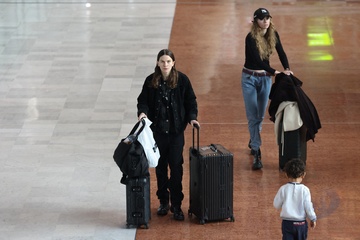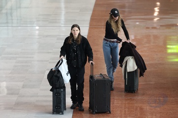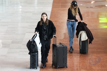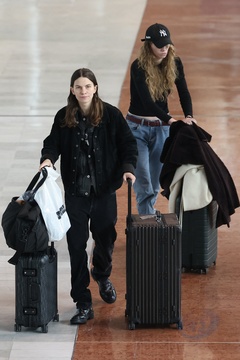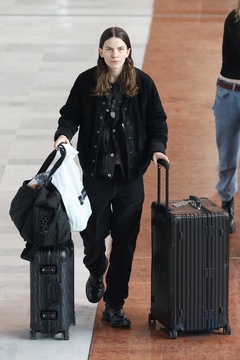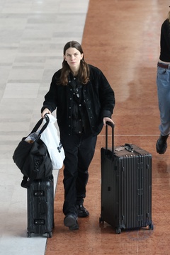 Exclusif - Eliot Paulina Sumner arrive à l'aéroport de Paris-Charles de Gaulle (CDG) lors de la semaine de la mode femme automne/hiver 2024-2025 (PFW)