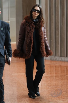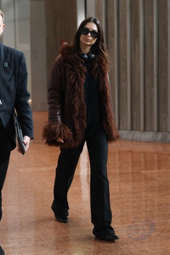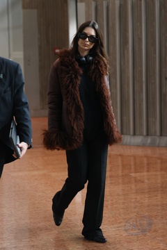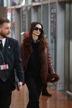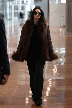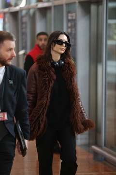 Exclusif - Emily Ratajkowski arrive à l'aéroport de Paris-Charles de Gaulle (CDG) lors de la semaine de la mode femme automne/hiver 2024-2025 (PFW)