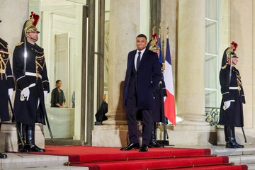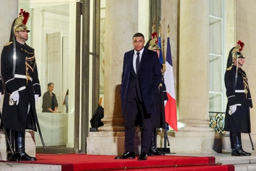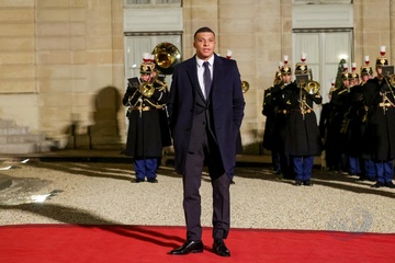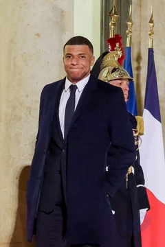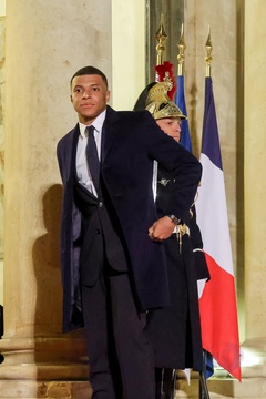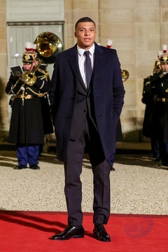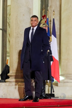 Kylian Mbappé przybywa na uroczysty obiad wydany przez Prezydenta Republiki Francuskiej na cześć emira Kataru w Pałacu Prezydenckim Elizejskim w Paryżu. 14