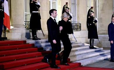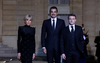 uroczysta kolacja na cześć emira Kataru Jego Wysokości Szejka Tamima bin Hamada Al Thaniego w Pałacu Prezydenckim Elizejskim w Paryżu