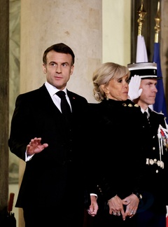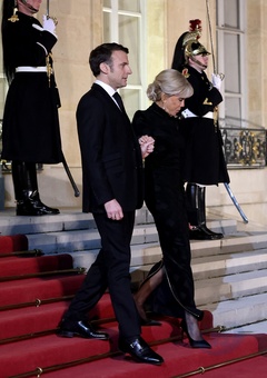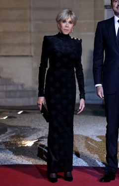 Arrivées au dîner d'état en l'honneur de l'Emir du Qatar son altesse Cheikh Tamim bin Hamad Al Thani au palais présidentiel de l'Elysée à Paris (Brigitte Macron)