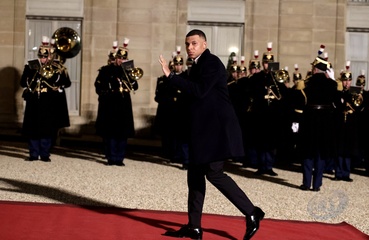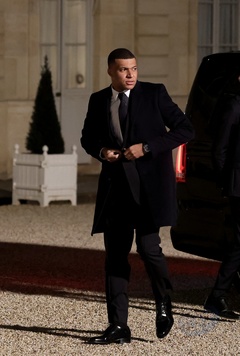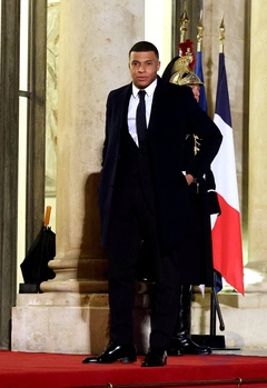 Arrivées au dîner d'état en l'honneur de l'Emir du Qatar son altesse Cheikh Tamim bin Hamad Al Thani au palais présidentiel de l'Elysée à Paris (Kylian Mbappé)