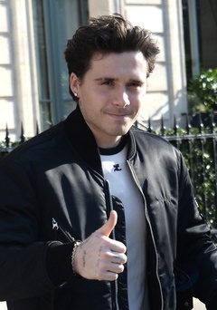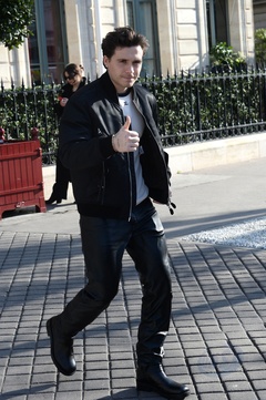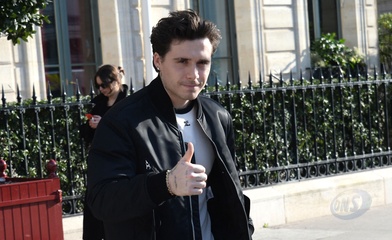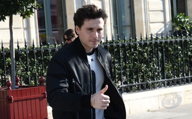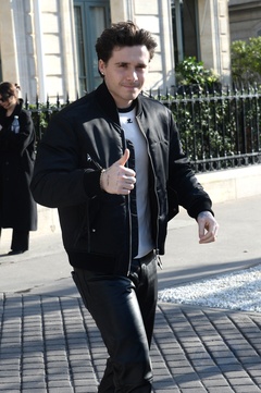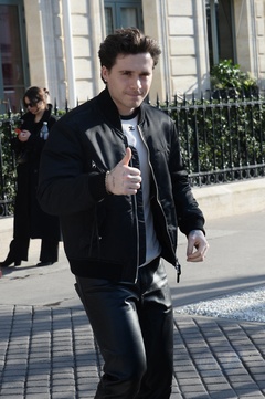 Brooklyn Beckham quitte l'hôtel restaurant "La Réserve" en marge de la fashion week femme automne/hiver 2024-2025 à Paris (PFW)