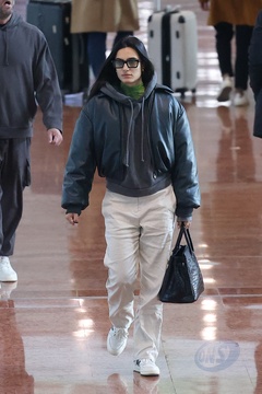 Isabela Grutman i jej mąż David przylatują na lotnisko Paryż-Charles de Gaulle (CDG) podczas Tygodnia Mody Damskiej Jesień/Zima 2024–2025 (PFW) w Paryżu 8