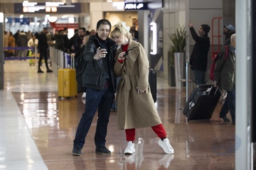 Exclusif - Kathryn Newton arrive à l'aéroport de Paris-Charles de Gaulle (CDG) lors de la semaine de la mode femme automne/hiver 2024-2025 (PFW)