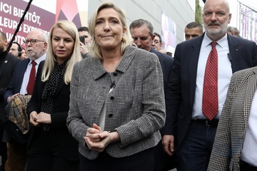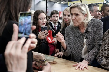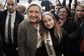 Marine Le Pen, présidente du groupe Rassemblement National à l'Assemblée nationale lors de la 60ème édition du Salon international de l’Agriculture (SIA), Porte de Versailles à Paris