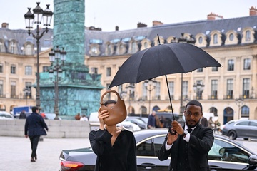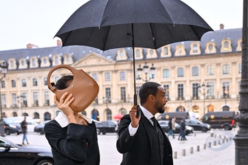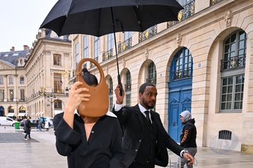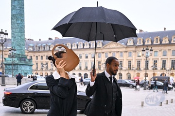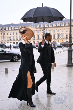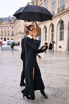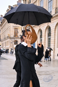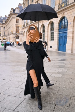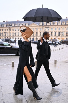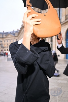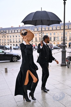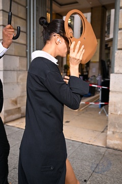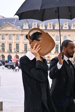 Irina Shayk nie chce, żeby ją fotografowano i filmowano, gdy przybywa, aby pokazać Schiaparelli modę damską na jesień/zimę 2024–2025 podczas Tygodnia Mody w Paryżu (PFW) w Pavillon Vendôme 28