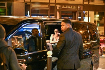 Exclusif - Kanye West et sa femme Bianca Censori à la sortie du restaurant Ferdi à Paris