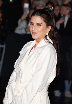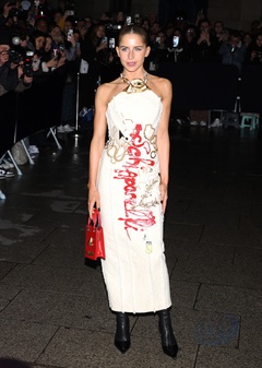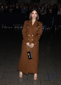 Gwiazdy na pokazie mody damskiej Schiaparelli jesień/zima 2024-2025 podczas Paris Fashion Week