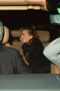 Les soeurs Olsen sortent du restaurant Caviar Kaspia en marge de la fashion week à Paris (PFW)