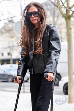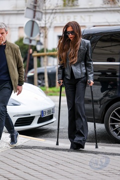 Exclusif - Victoria Beckham arrive à l'hôtel La Réserve lors de la mode femme automne / hiver 2024-2025 lors de la Fashion Week de Paris (PFW)