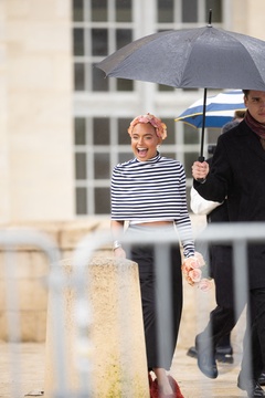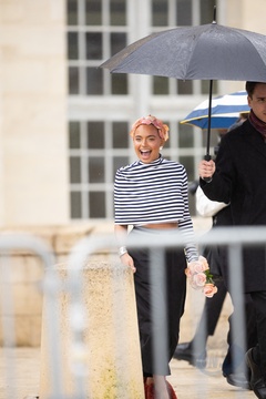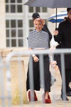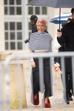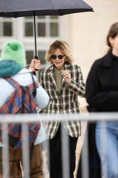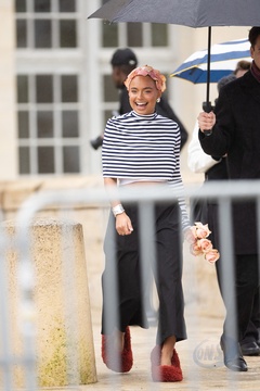 Les célébrités arrivent au défilé Loewe au château de de Vincennes lors de la mode femme automne / hiver 2024-2025 lors de la Fashion Week de Paris (PFW)