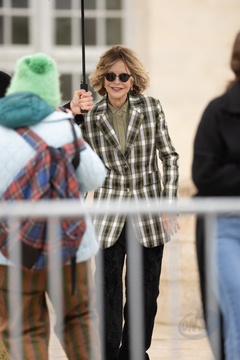 Gwiazdy przybywają na pokaz Loewe w Château de Vincennes podczas Fashion Week jesień/zima 2024-2025 podczas Tygodnia Mody w Paryżu 83