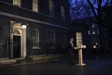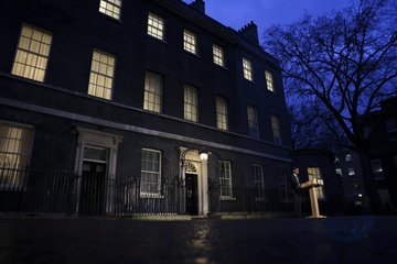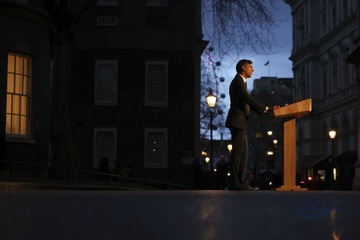 Prime Minister Rishi Sunak makes a statement from Downing Street