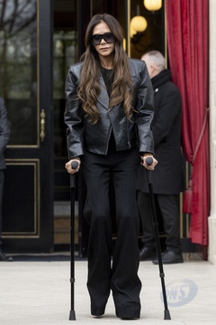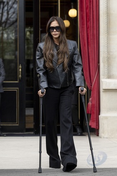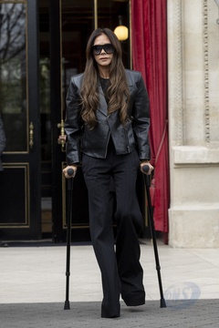 Victoria Beckham à la sortie de l'hôtel La Réserve lors de la mode femme automne / hiver 2024-2025 lors de la Fashion Week de Paris (PFW)
