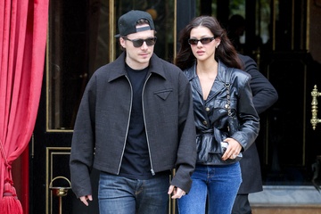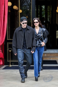 Brooklyn Beckham i jego żona Nicola Peltz opuszczają Hotel La Réserve podczas pokazu mody damskiej jesień/zima 2024-2025 podczas Tygodnia Mody w Paryżu 6