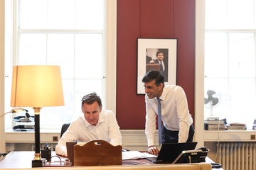 Prime Minister Rishi Sunak speaks with the Chancellor