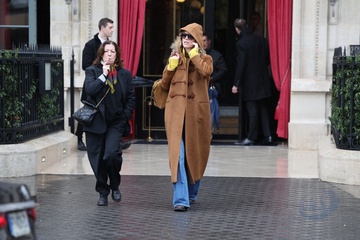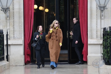 CM - Exclusif - Eva Herzigová à la sortie de l'hôtel La Réserve lors de la mode femme automne / hiver 2024-2025 lors de la Fashion Week de Paris (PFW)