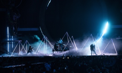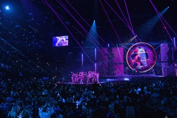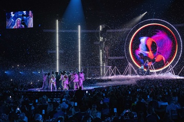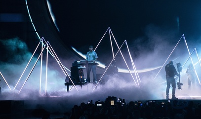 Calvin Harris and Ellie Goulding performing live at the 2024 BRIT awards ceremony, O2 Arena, London, on 2 March 2024