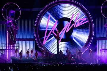 Kylie Minogue performing live at the 2024 BRIT awards ceremony, O2 Arena, London, on 2 March 2024