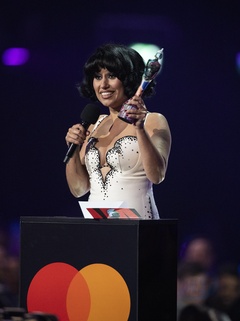 RAYE being presented the BRIT Award for Album of the Year at the 2024 BRIT Awards at The O2 Arena, London on 2 March 2024