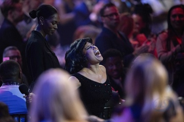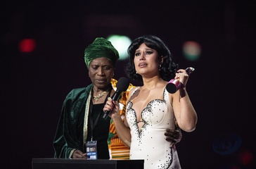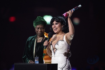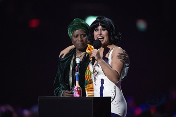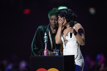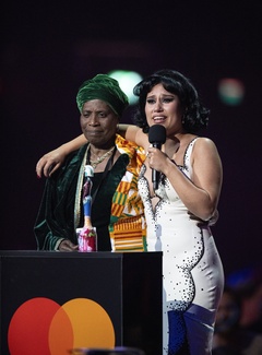 RAYE being presented the BRIT Award for R&B Act at the 2024 BRIT Awards at The O2 Arena, London on 2 March 2024