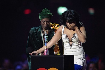 RAYE being presented the BRIT Award for Song of the Year at the 2024 BRIT Awards at The O2 Arena, London on 2 March 2024