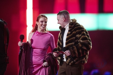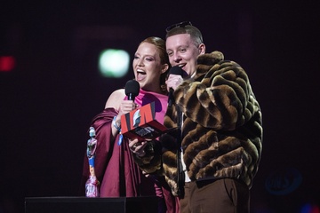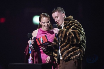 Jess Glynne and Aitch presenting the BRIT Award for R&B Act at the 2024 BRIT Awards at The O2 Arena, London on 2 March 2024