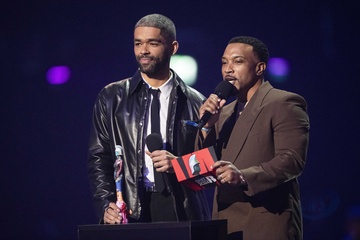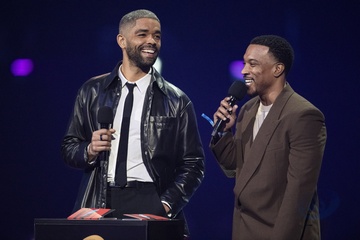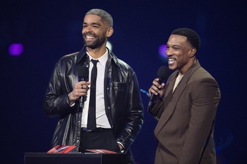 Kingsley Ben-Adir and Ashley Walters presenting the BRIT Award for Hip Hop / Grime / Rap Act at the 2024 BRIT Awards at The O2 Arena, London on 2 March 2024
