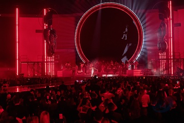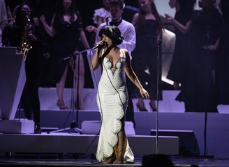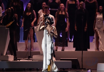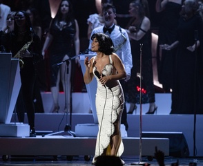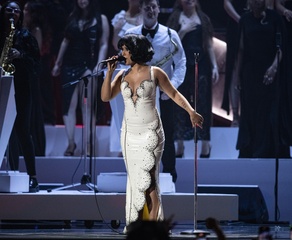 RAYE performing live at the 2024 BRIT awards ceremony, O2 Arena, London, on 2 March 2024